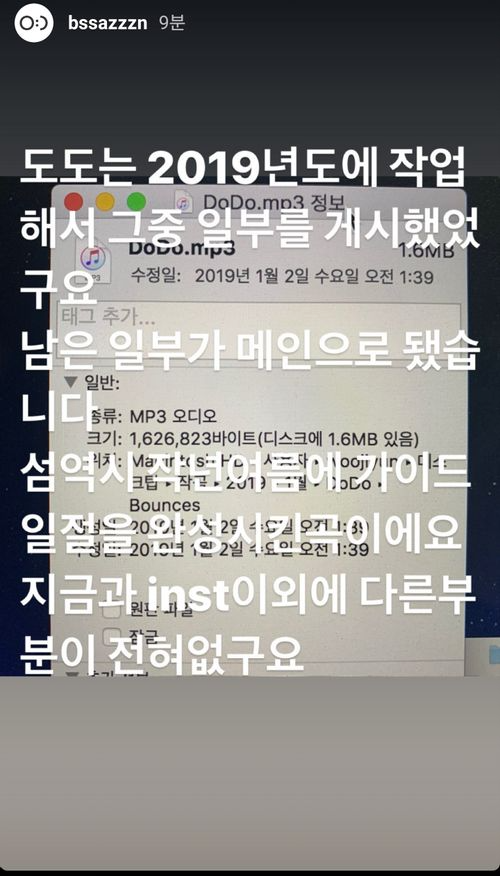 그렇게 불화설은 해프닝으로 끝나나 싶더니 탈퇴한 우지윤이 낯선아이라는 이름으로 데뷔하여 발매한 싱글에서 안지영을 저격하는 듯한 가사라는 주장에 제기되면서 논란은 다시 불타오릅니다. 이에 우지윤은 2019년에 만든 곡이라는 내용과 함께 음악 파일의 생성일자를 인스타그램 스토리에 게시했습니다.